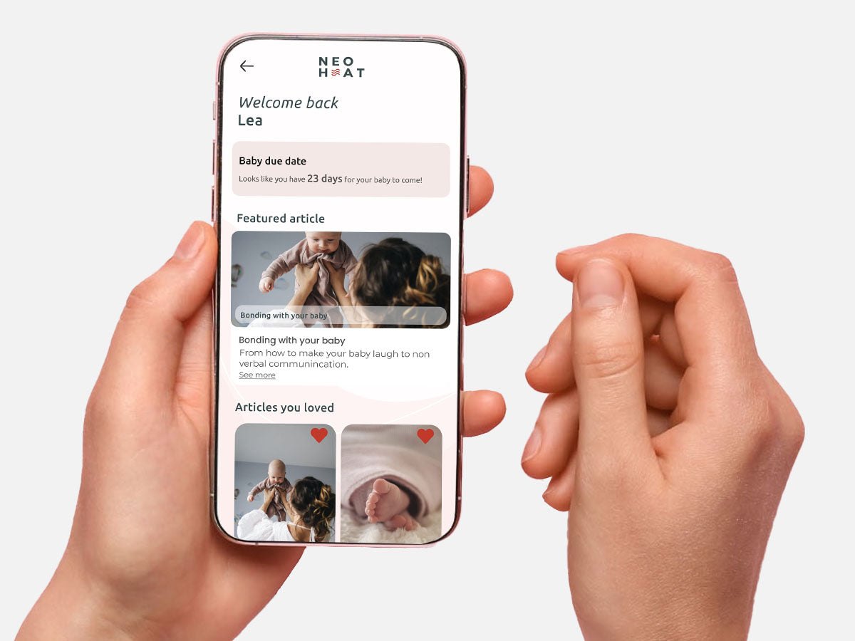 Wear NeoHeat in NeoBrief for 10 minutes every day right after giving birth. The app will guide your journey.